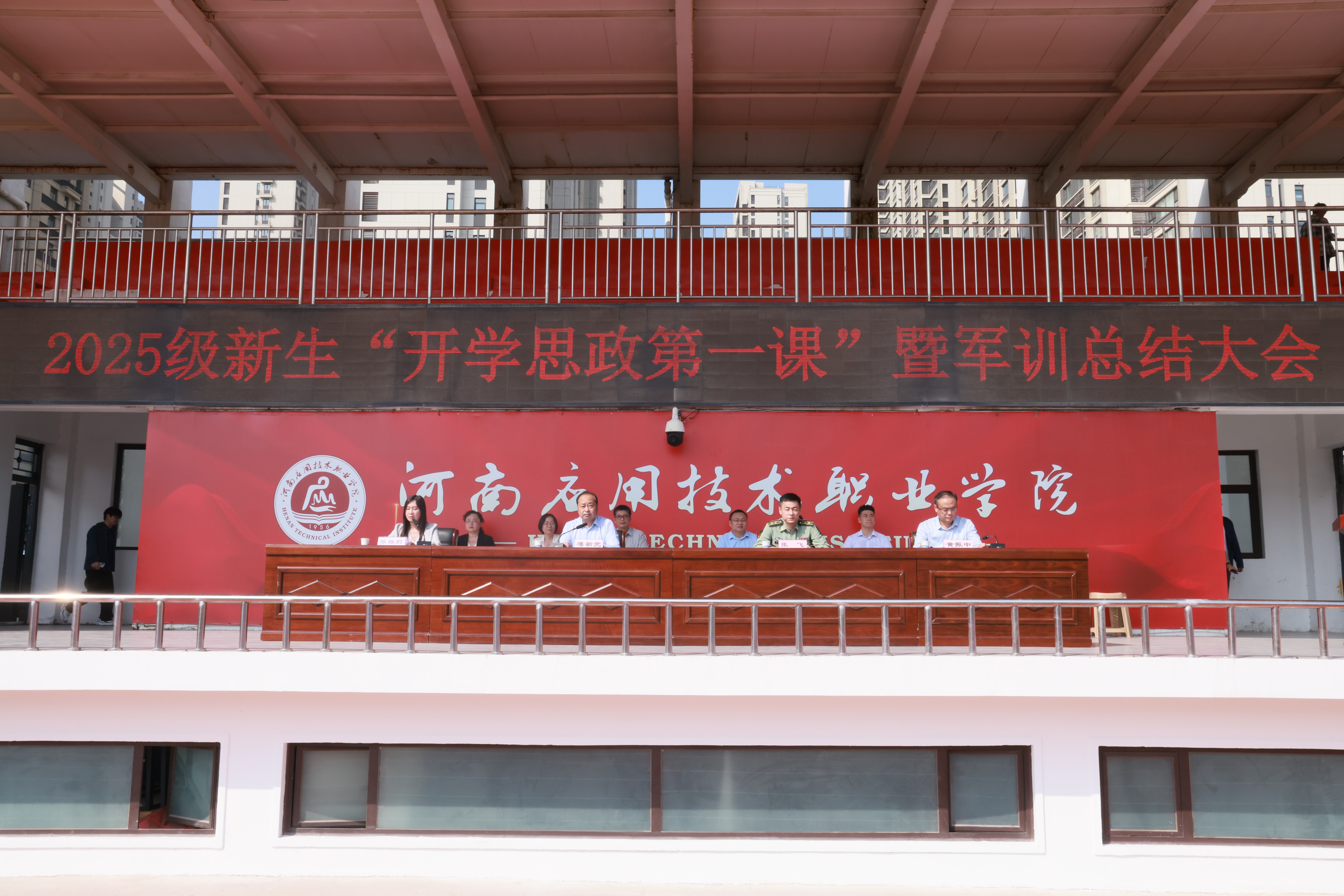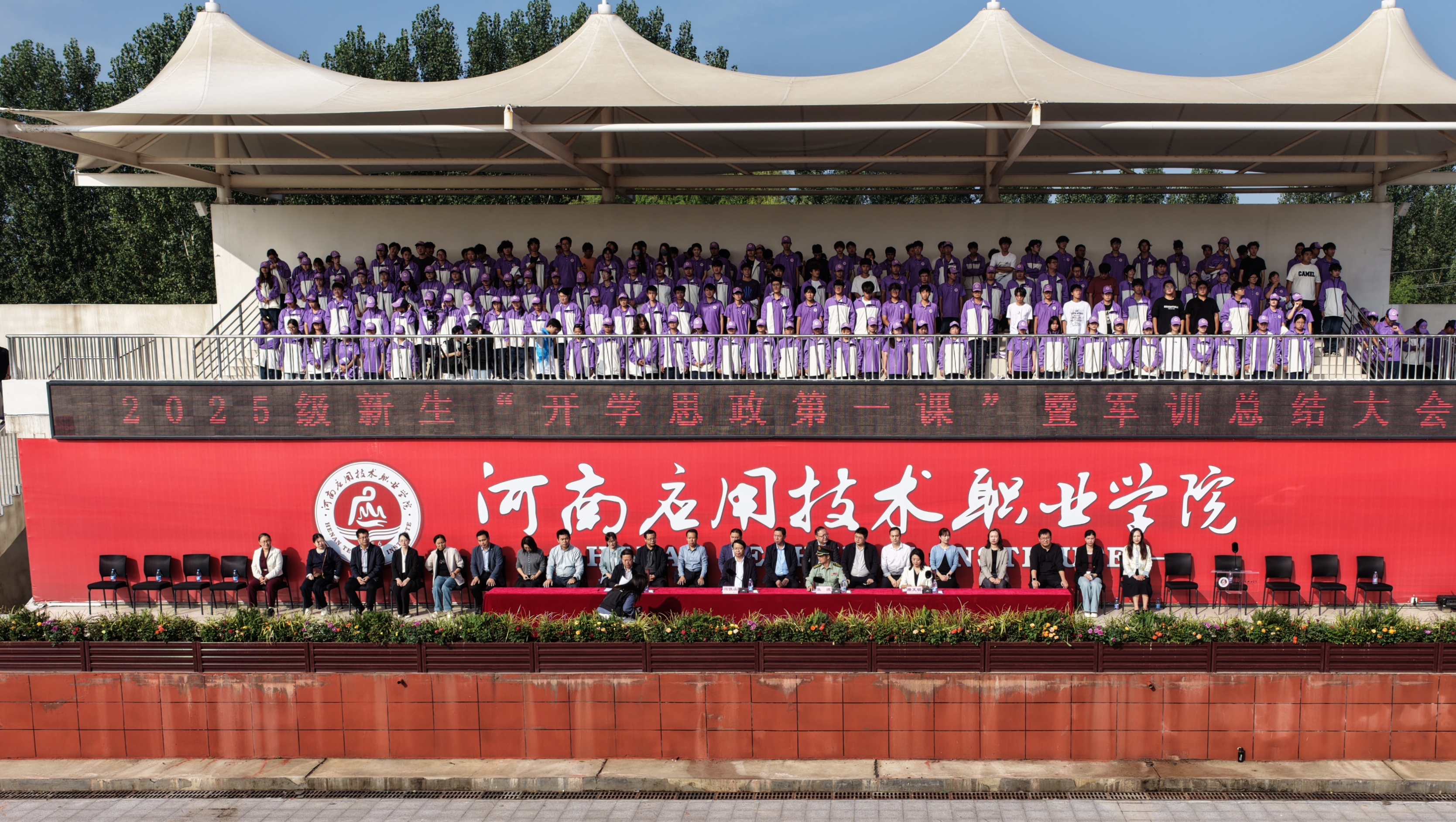 雨歇长空净,云开见碧霄。9月29日,我校在郑州、开封两校区同步举行2025级新生“开学思政第一课”暨军训总结大会,8300余名新生以昂扬风貌开启大学新征程。开封市龙亭区人民武装部上校政委张波,郑州市中原区人民武装部副部长张飞,学校党委书记闫俊山,校长薄新党,纪委书记陈雅莉,副校长常新中、黄振中、滕文锐出席两校区大会,各职能部门、二级学院(部)党政负责人,新生辅导员参会。大会分别由陈雅莉、常新中主持。