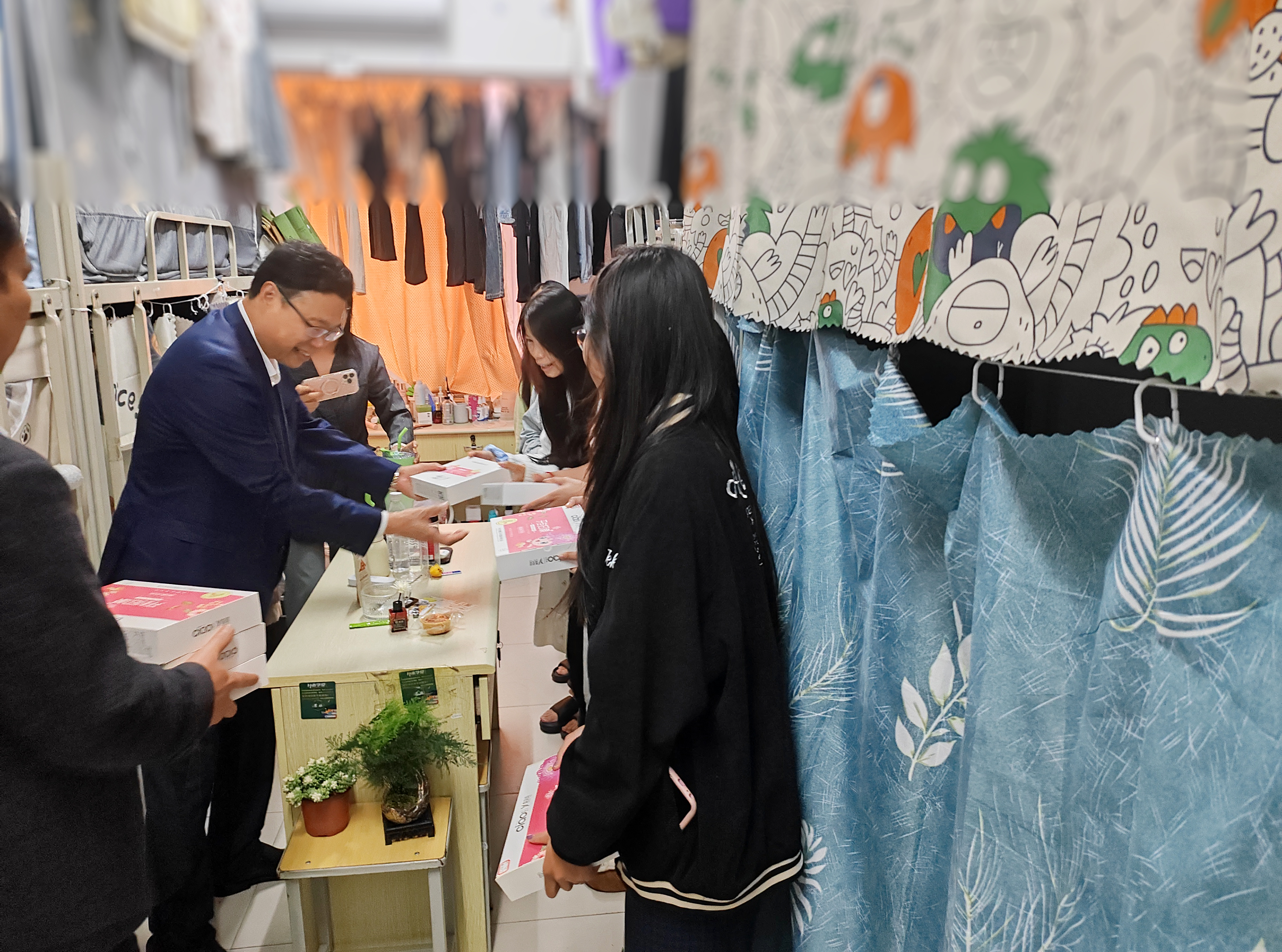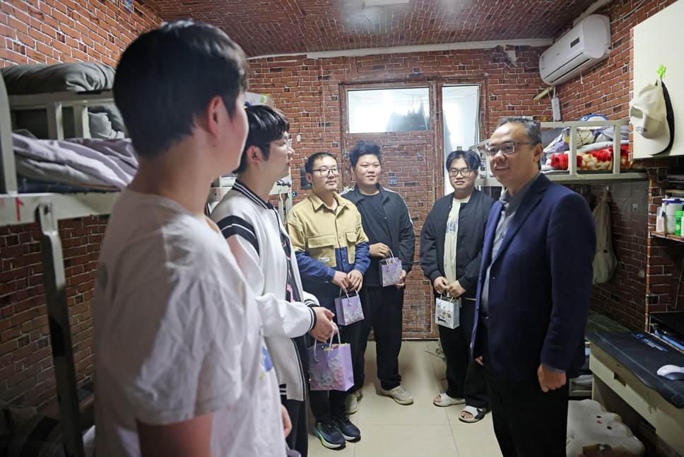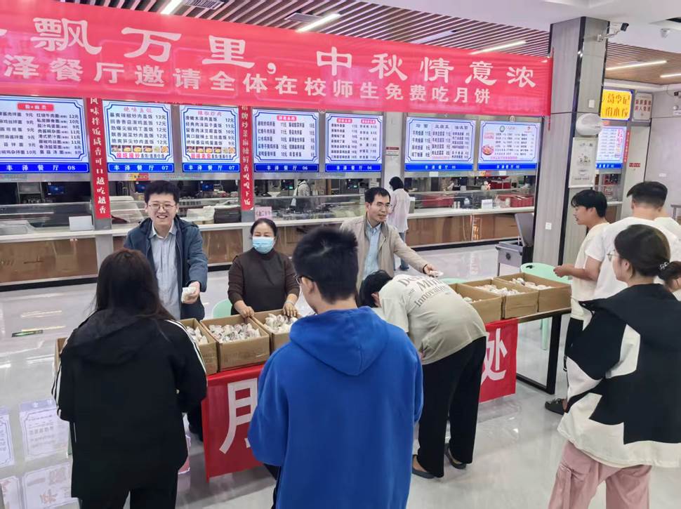 学校党委副书记魏新华、副校长黄振中带领相关部门负责同志向在校值班值守人员及留校学生发放香甜可口的月饼,并送上诚挚的节日祝愿。活动现场气氛热烈,温馨有序,香甜的月饼、温暖的笑容,勾勒出应院校园里一道动人的风景。