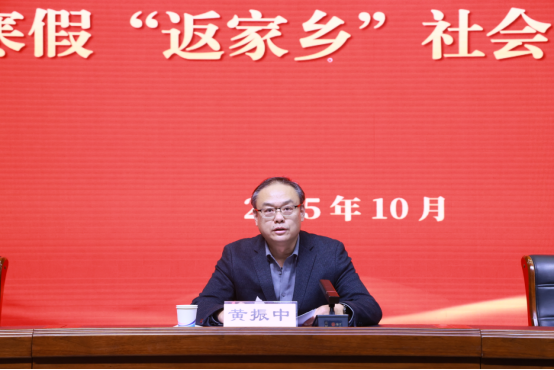 黄振中在讲话中肯定了我校暑期社会实践活动所取得的丰硕成果,对即将开展的寒假社会实践活动提出四点期望:一是要“向下扎根”,少些“浮躁气”,多些“烟火气”。真正在社会实践的“大熔炉”中锤炼品格、增长才干。二是要“向上生长”,少些“畏难心”,多些“进取心”。用迎难而上、百折不挠的劲头去“打熬筋骨”,练就“提笔能写、遇事能办、攻坚能上”的硬本领。三是要“久久为功”,少些“一阵风”,多些“长坚持”。把实践中收获的“好案例”“新经验”广泛传播,形成“一盏灯照亮一大片”的示范效应。四是要“时时警惕”,少些“马虎眼”,多些“细心思”。做好“安全攻略”,提前制定预案,严守纪律“不越线”,做好个人防护“不掉链”,确保每次实践活动都高质量完成。