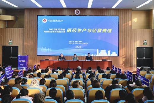 12月11日下午,由河南省教育厅主办的2025年河南省高等职业教育技能大赛医药生产与经营赛道开幕式在我校开封校区隆重举行。河南省教育厅职业教育与成人教育处副处长张俊丽,我校党委书记闫俊山、副校长黄振中等领导嘉宾出席开幕式,来自全省26支参赛队伍的领队、指导教师及参赛选手共同参加。开幕式由黄振中主持。