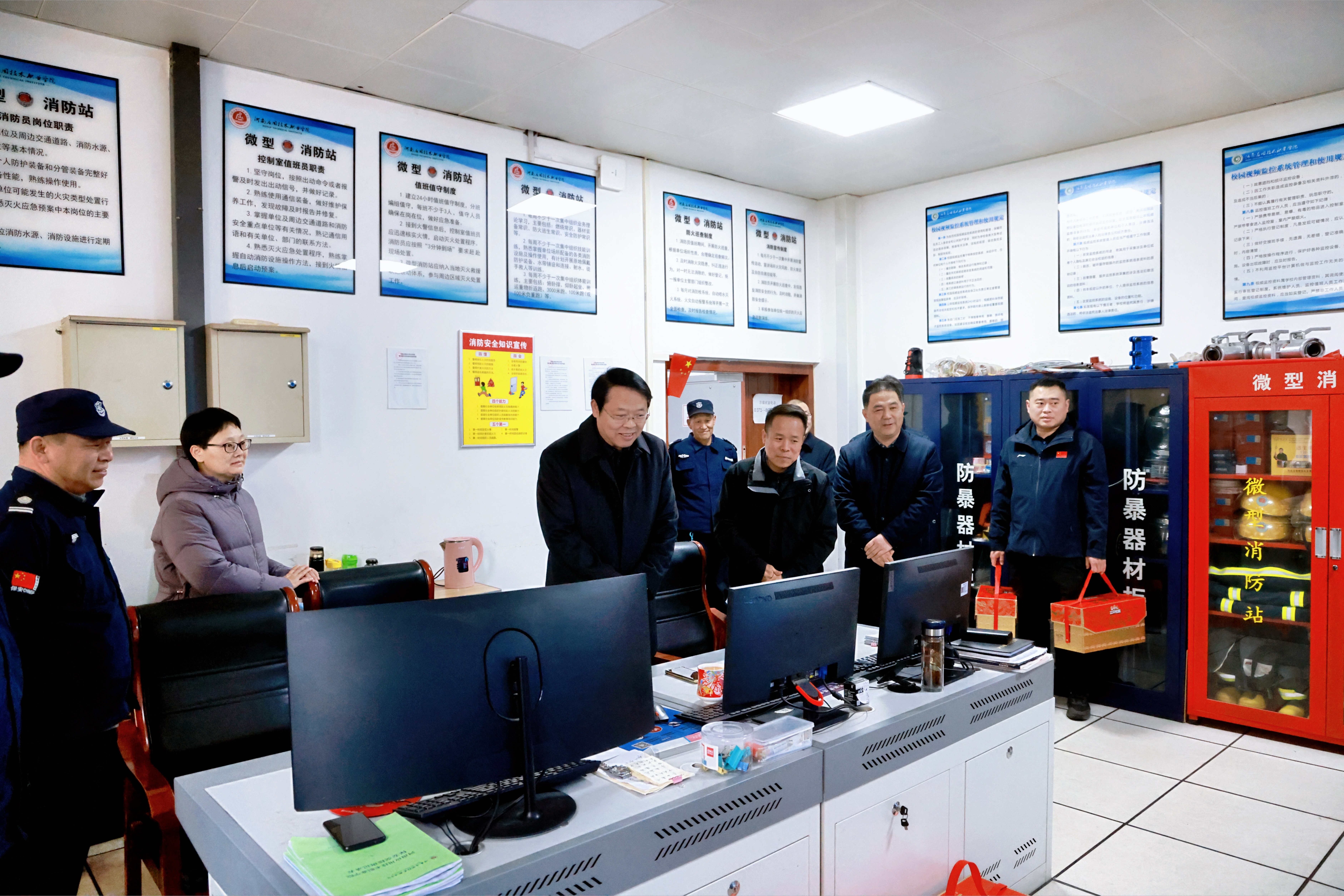 2月17日上午,薄新党一行前往开封校区开展慰问活动,向节日期间坚守岗位的值班工作人员、一线值守人员送上新春问候和马年祝福,并发放了新春慰问品,把学校的关怀与温暖送到每一位值守人员的心坎上。薄新党指出,过去一年,全体值班人员恪尽职守、默默奉献,用坚守筑牢校园安全防线,用担当守护师生平安福祉,为学校高质量发展提供了坚实保障。值此马年新春,值守人员舍小家、顾大家,坚守工作岗位、践行责任使命。新的一年要延续优良作风,以“骐骥驰骋、势不可挡”的昂扬姿态履职尽责,严把安全关、筑牢防护线,全力守护校园平安,为学校新一年发展开好局、起好步保驾护航。