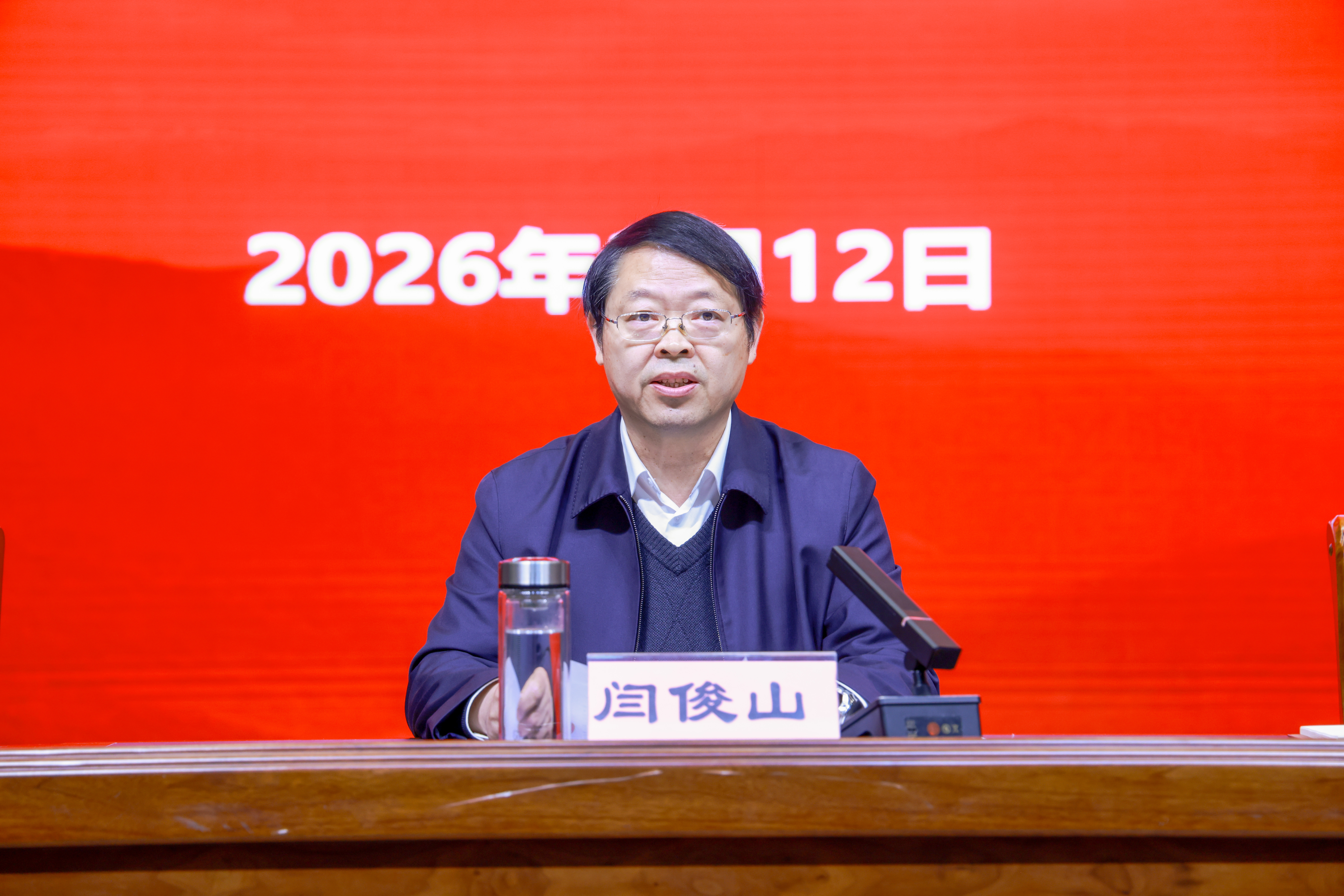闫俊山强调,2026年是中国共产党成立105周年,是“十五五”规划的开局之年,是教育强国建设三年行动计划承上启下的关键之年,也是我校建校70周年。做好今年的全面从严治党工作,具有十分重要的意义。学校各级党组织和党员干部要以更高标准、更实举措,推动全面从严治党向纵深发展。一是要始终坚持政治统领,坚定不移做到“两个维护”;二是要始终坚持固本强基,锲而不舍夯实基层基础;三是要始终坚持正风肃纪,一以贯之涵育清风正气;四是要始终坚持守正创新,毫不动摇推动事业发展;五是要始终坚持安全至上,持之以恒维护和谐稳定;六是要始终坚持压实责任,从严从实抓好管党治党。