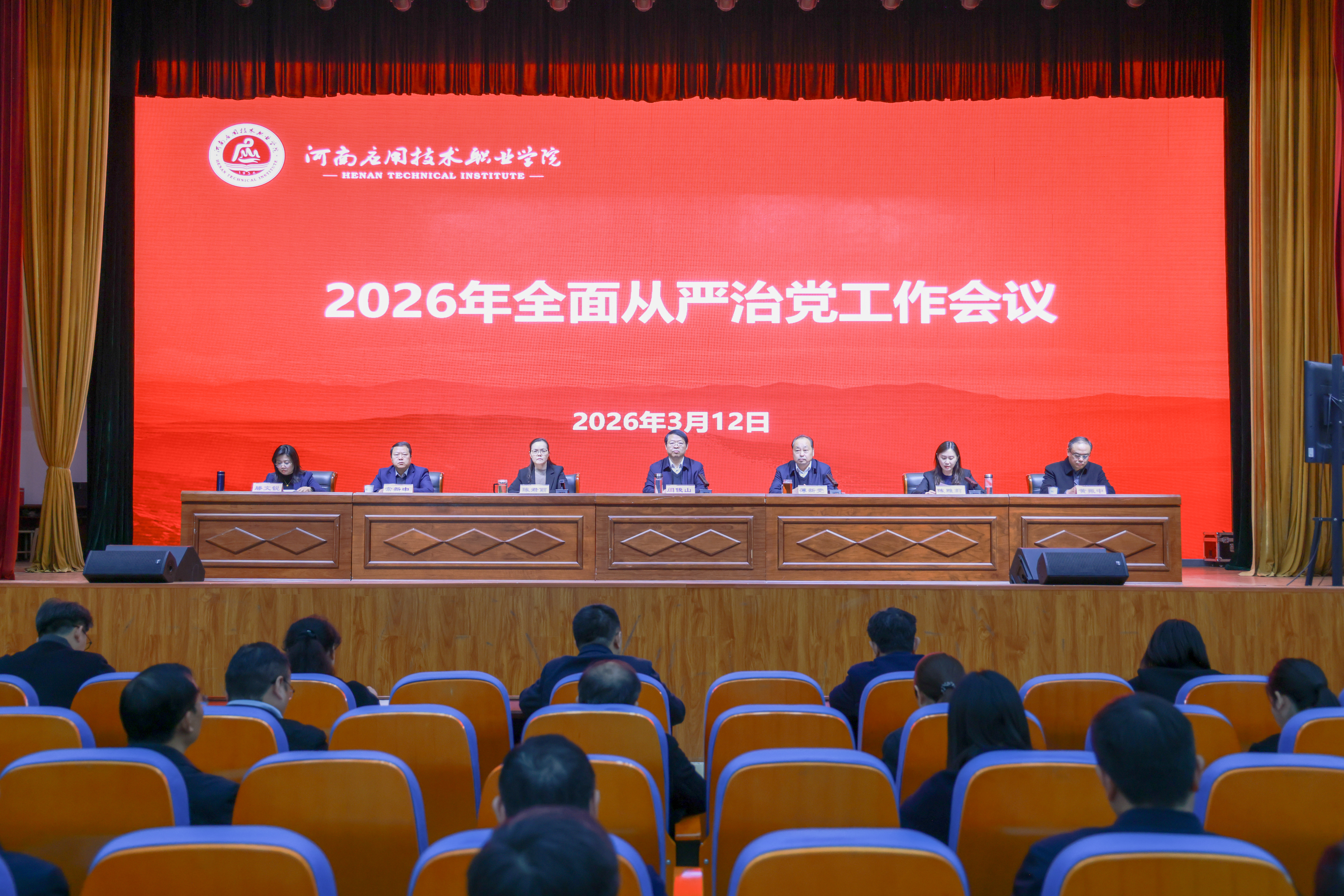 3月12日上午,我校在郑州校区学生活动中心召开2026年全面从严治党工作会议。学校全体党委委员、纪委委员,全体中层干部,各党总支、直属党支部纪检委员参加会议。党委副书记、校长薄新党主持会议。