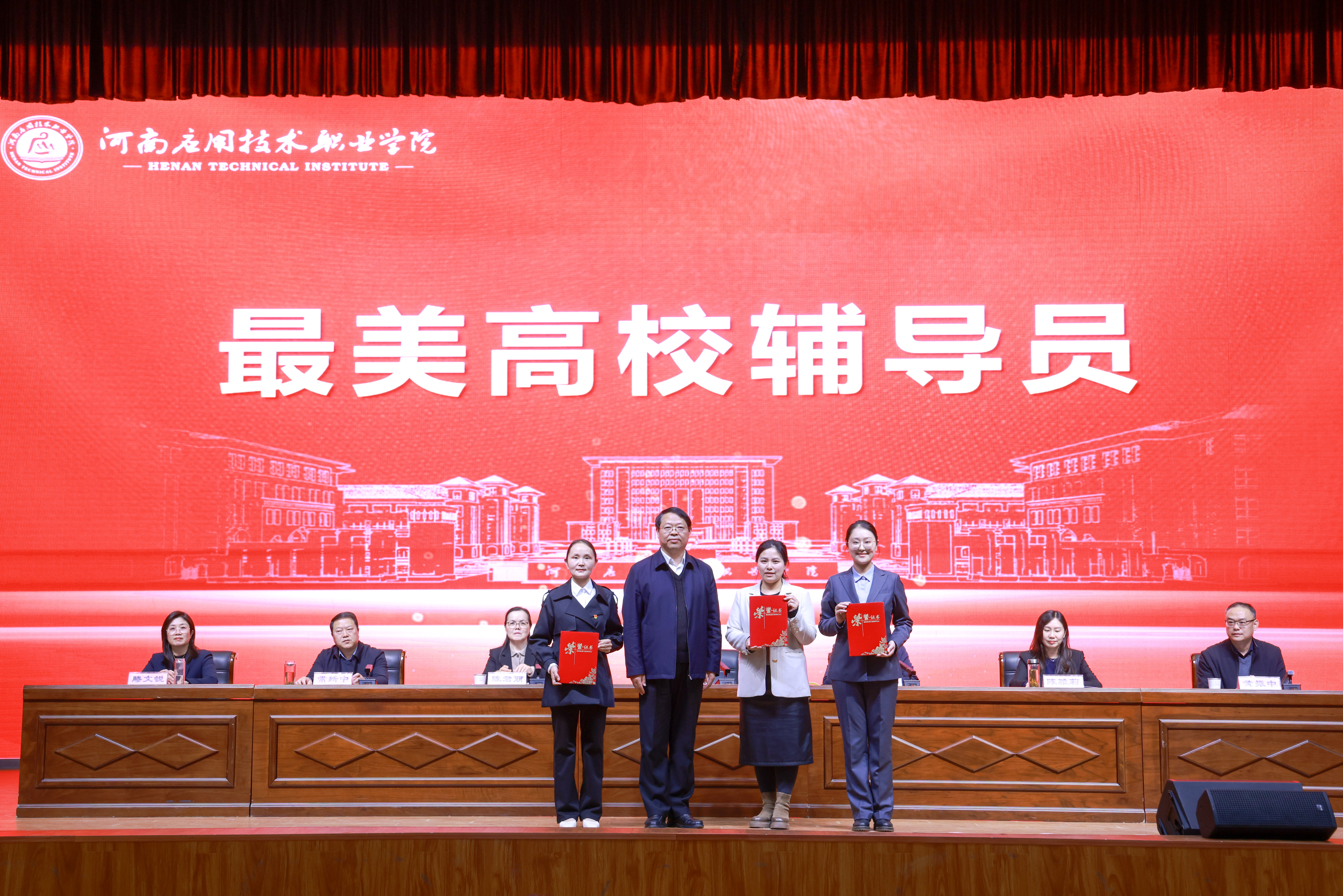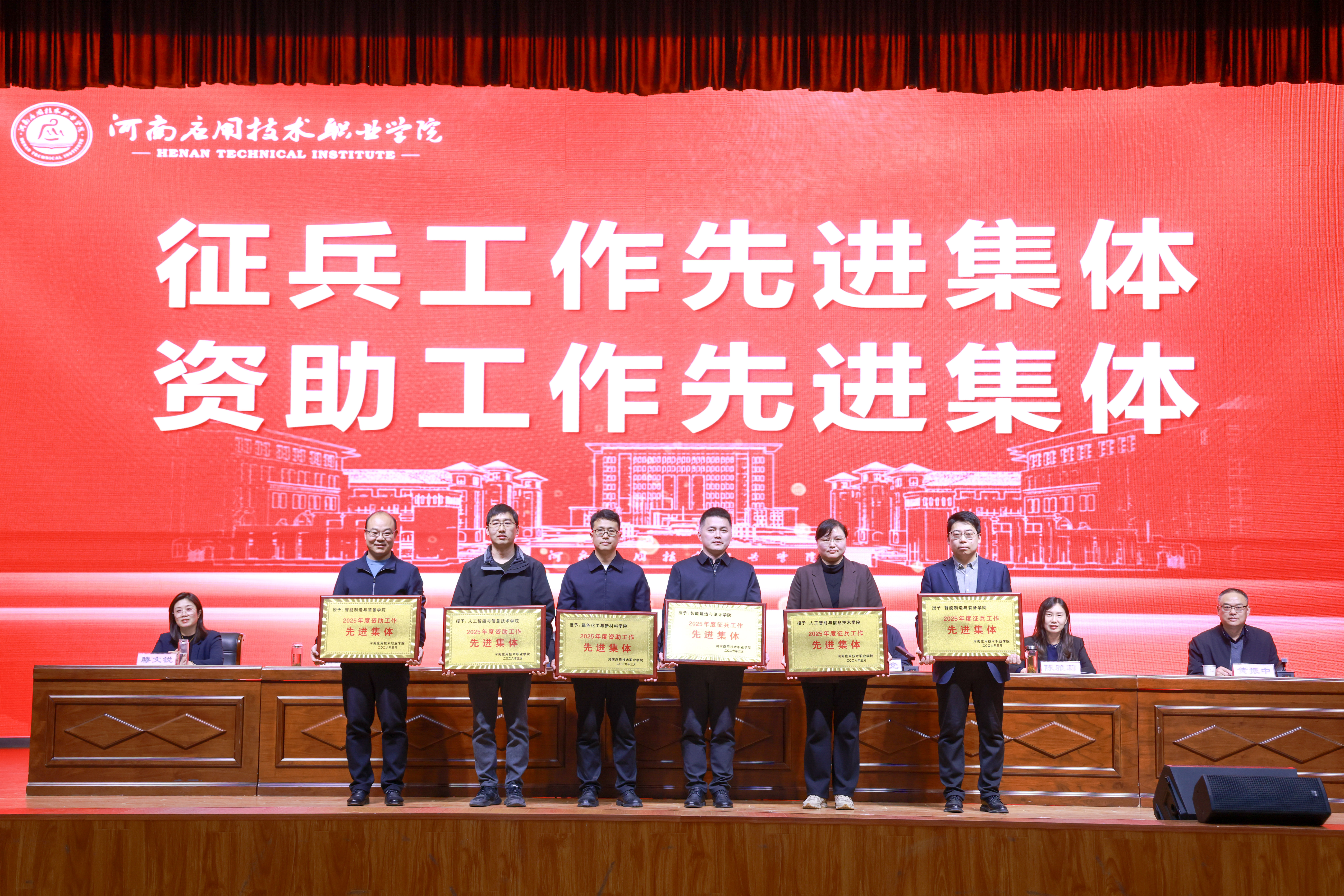 党委副书记、工会主席陈君丽宣读《河南应用技术职业学院关于表彰2025年国家奖学金、国家励志奖学金获得者的决定》等6个表彰文件。与会校领导为获奖集体与个人颁奖。