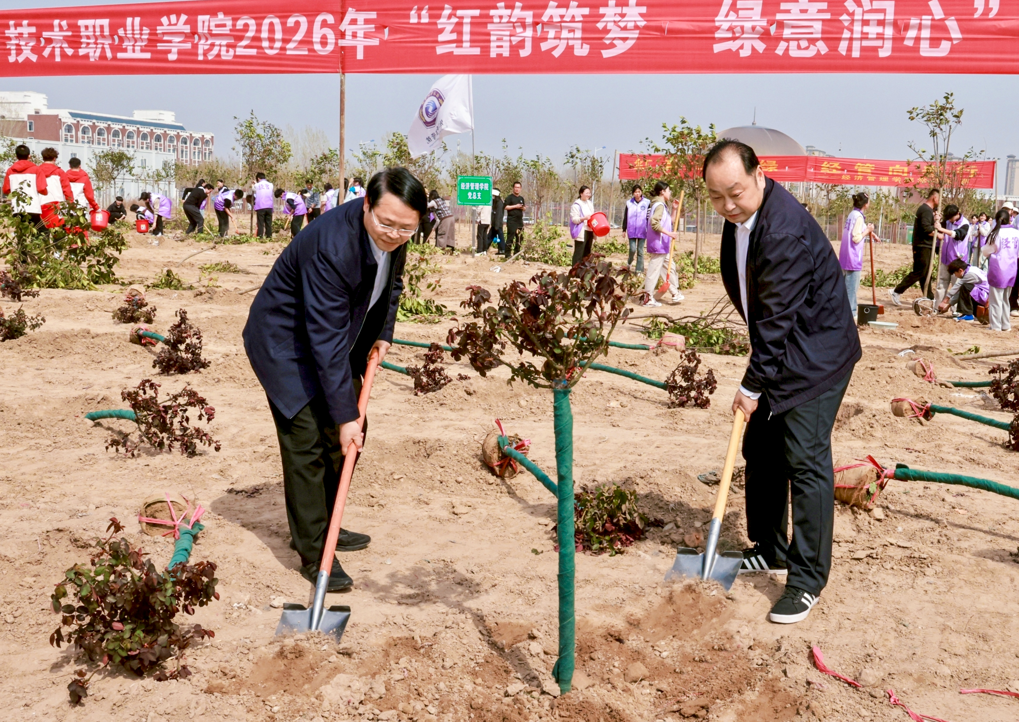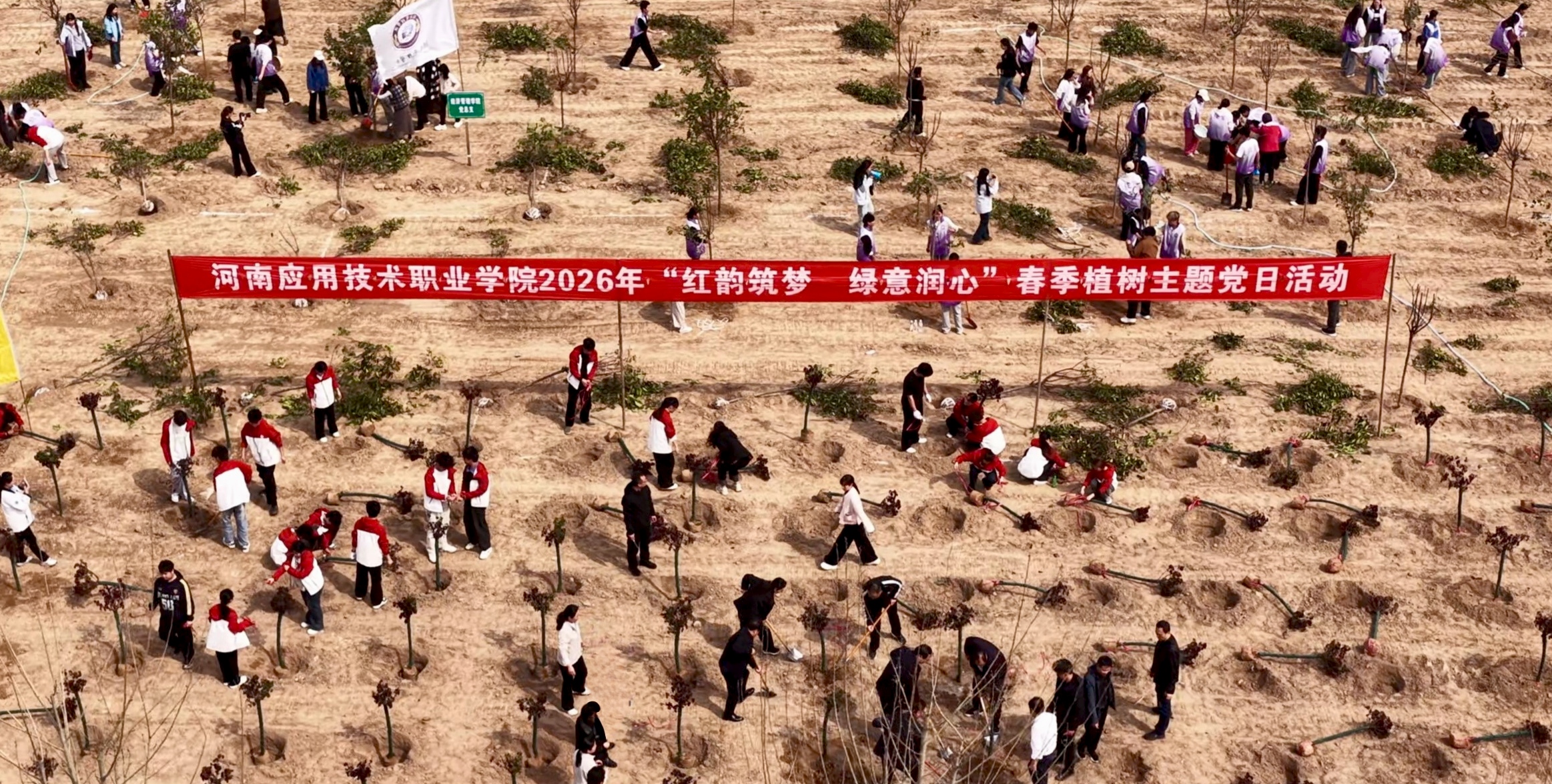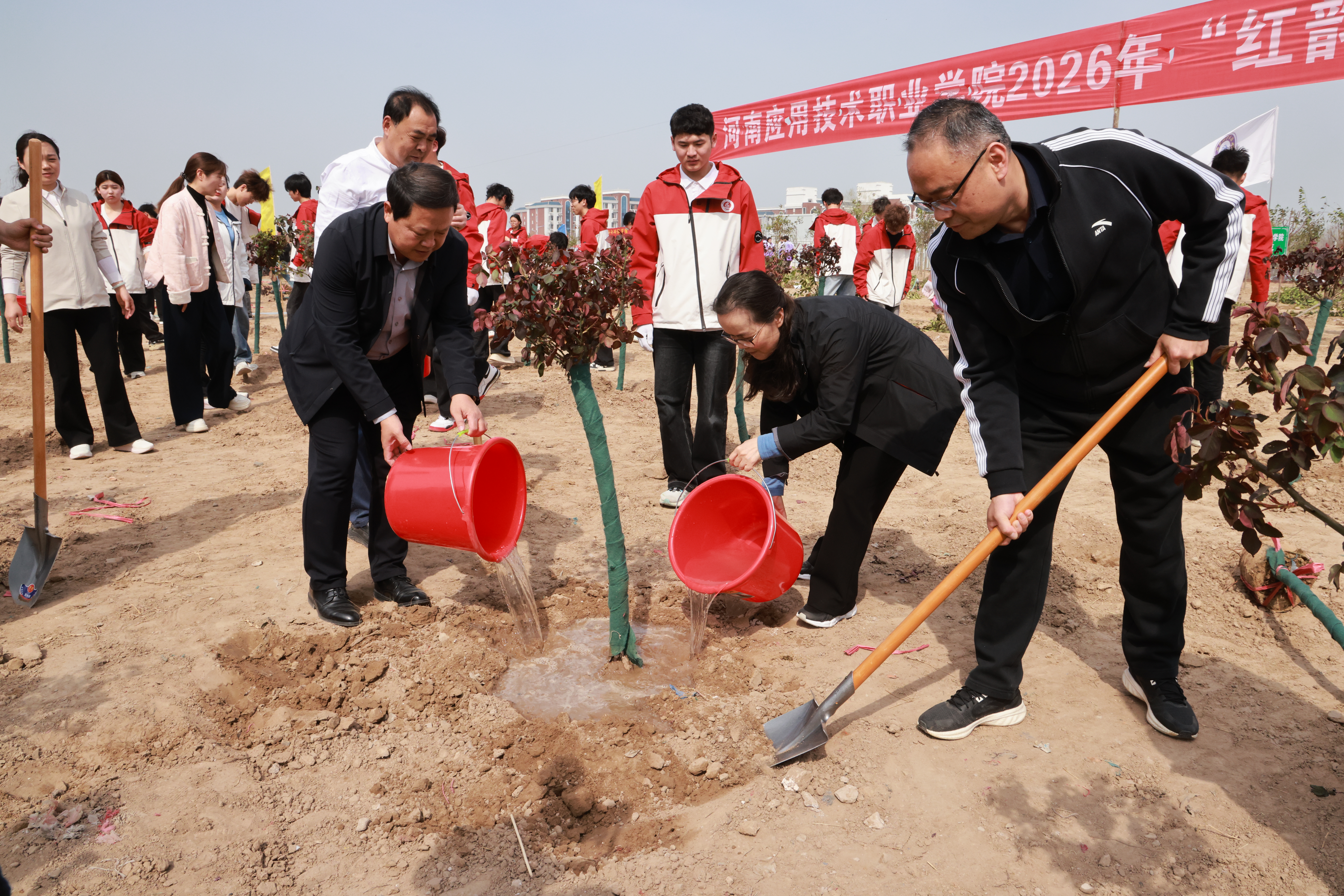 3月25日下午,我校在开封校区开展2026年“红韵筑梦·绿意润心”春季义务植树主题党日活动。校领导班子成员与各党总支、直属党支部教职工、学生志愿者一起植绿护绿、美化校园,以实际行动践行“绿水青山就是金山银山”理念,为建设美丽河南增添应院绿色力量。