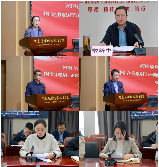 会上,党委副书记、工会主席陈君丽,副校长常新中,绿色化工与新材料学院党总支书记侯小兵,医药健康学院院长李元元,智能制造与装备学院党总支书记贾建树,现代生物与制药学院院长王湘妍作交流发言。