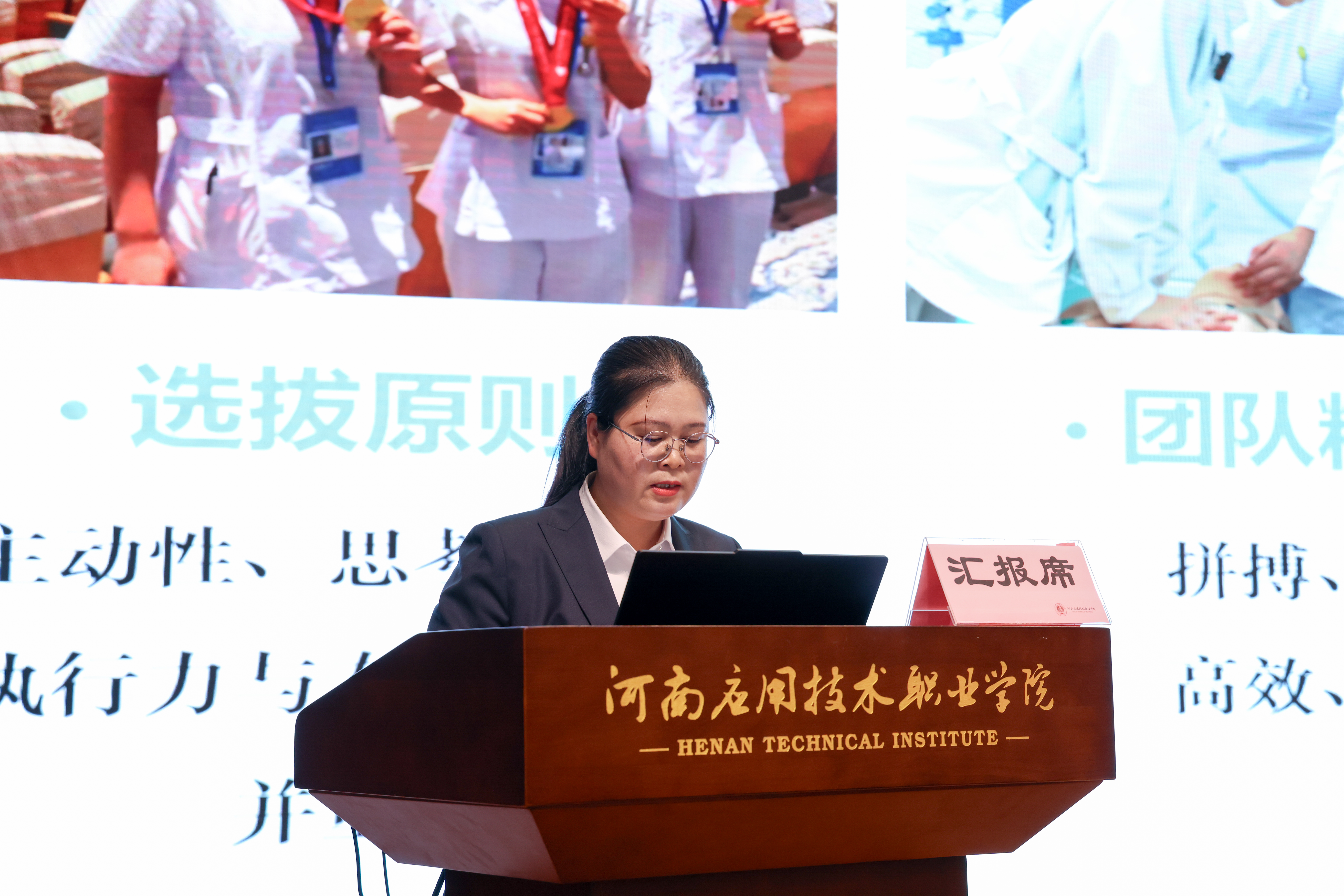 绿色化工与新材料学院李丹娜、康养护理学院冯顺丽、商学院刘傲宇、新能源与智能汽车学院王春燕作为教师代表依次发言。她们结合一年来在学生技能大赛、教学能力比赛、教材建设等方面的心得,分别以《教材筑基,课程铸魂——高质量教材建设与课程建设的协同推进》《2025年世界职业院校技能大赛康复治疗与护理赛道经验分享》《从备赛到夺金——物流与供应链赛道的思考与分享》《创新不止,匠心育人——2025年河南省高校教师教学创新大赛参赛分享》为主题,全方位展示了教育教学改革深耕实践的成果。