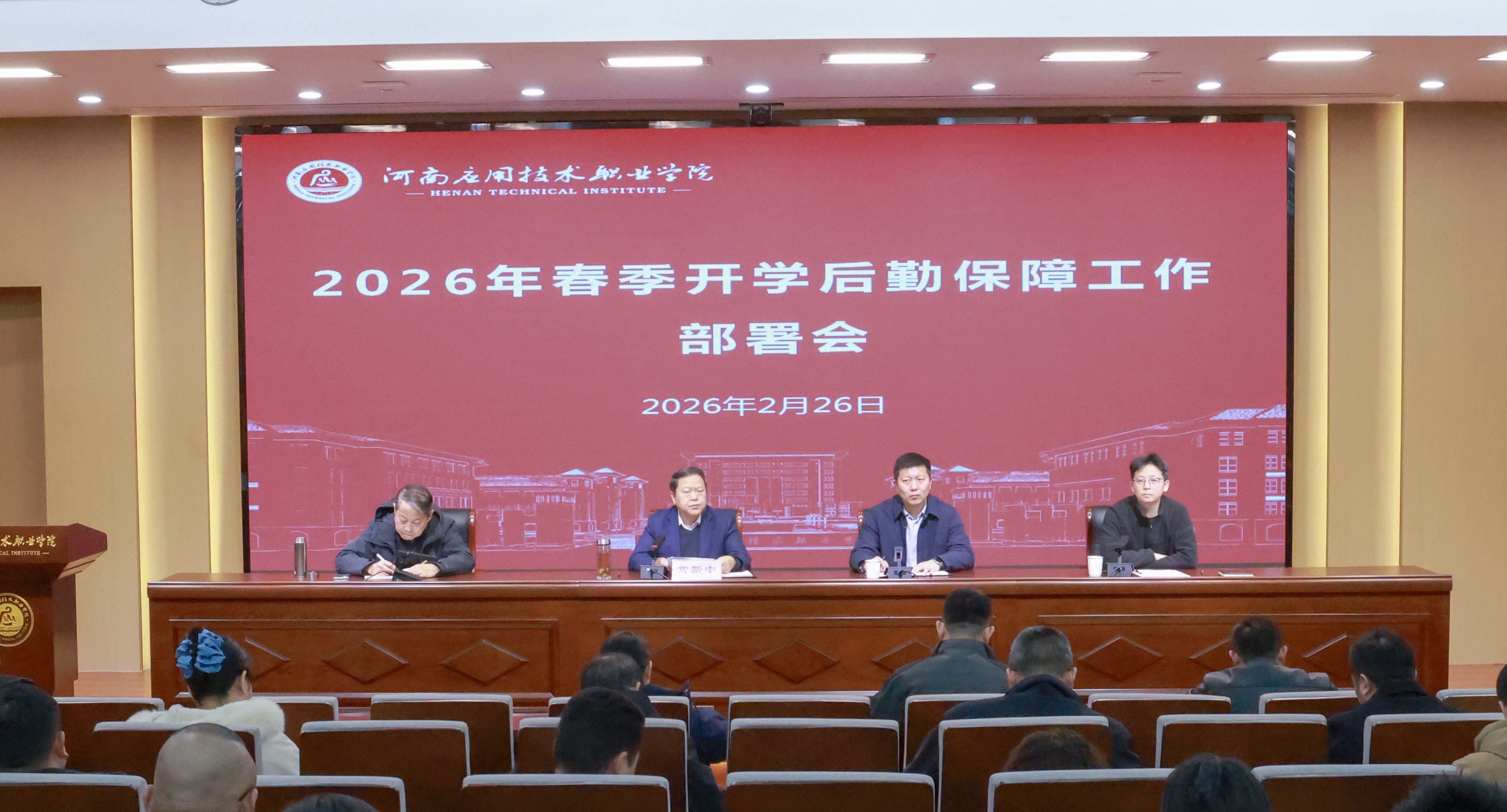 为确保我校新学期后勤保障服务高效开局、平稳推进,2月26日上午,2026年春季新学期后勤保障工作部署会在郑州校区1号实训楼报告厅召开。会议就相关工作进行系统安排与部署。副校长常新中出席会议并讲话,三校区各经营服务单位负责人及后勤处相关人员参加会议。会议由后勤处副处长张翼飞主持。