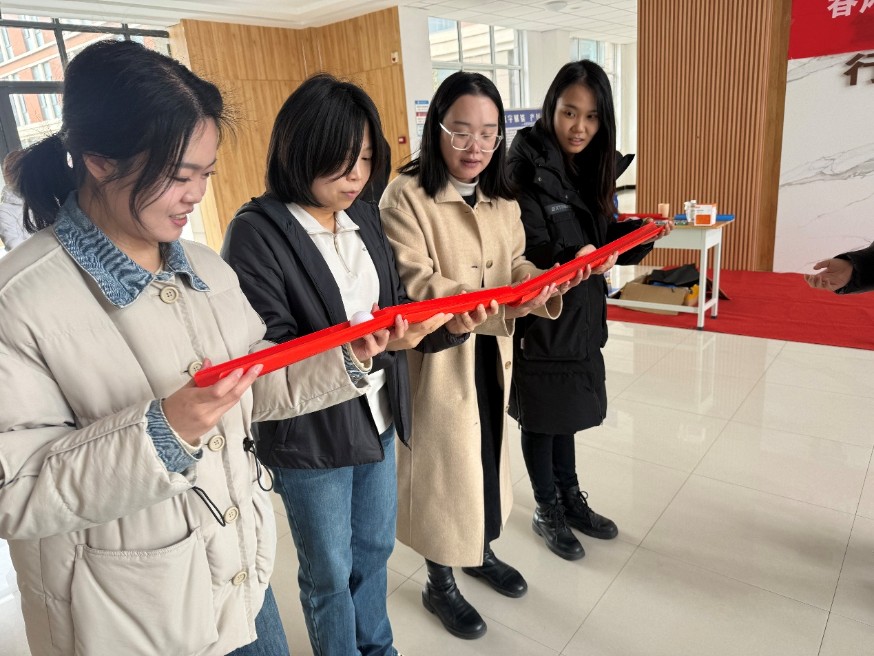 游戏现场暖意融融、充满欢乐。大家配合默契,在协作比拼中展现智慧与活力,在轻松互动中释放压力、收获快乐。她们的笑容与游戏精神定格成春日里最动人的画面,尽显商院女教师知性优雅、昂扬向上的独特风采。
