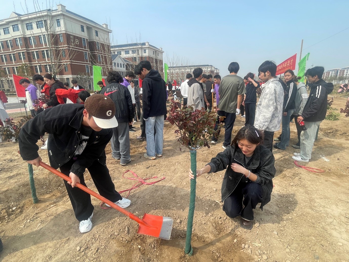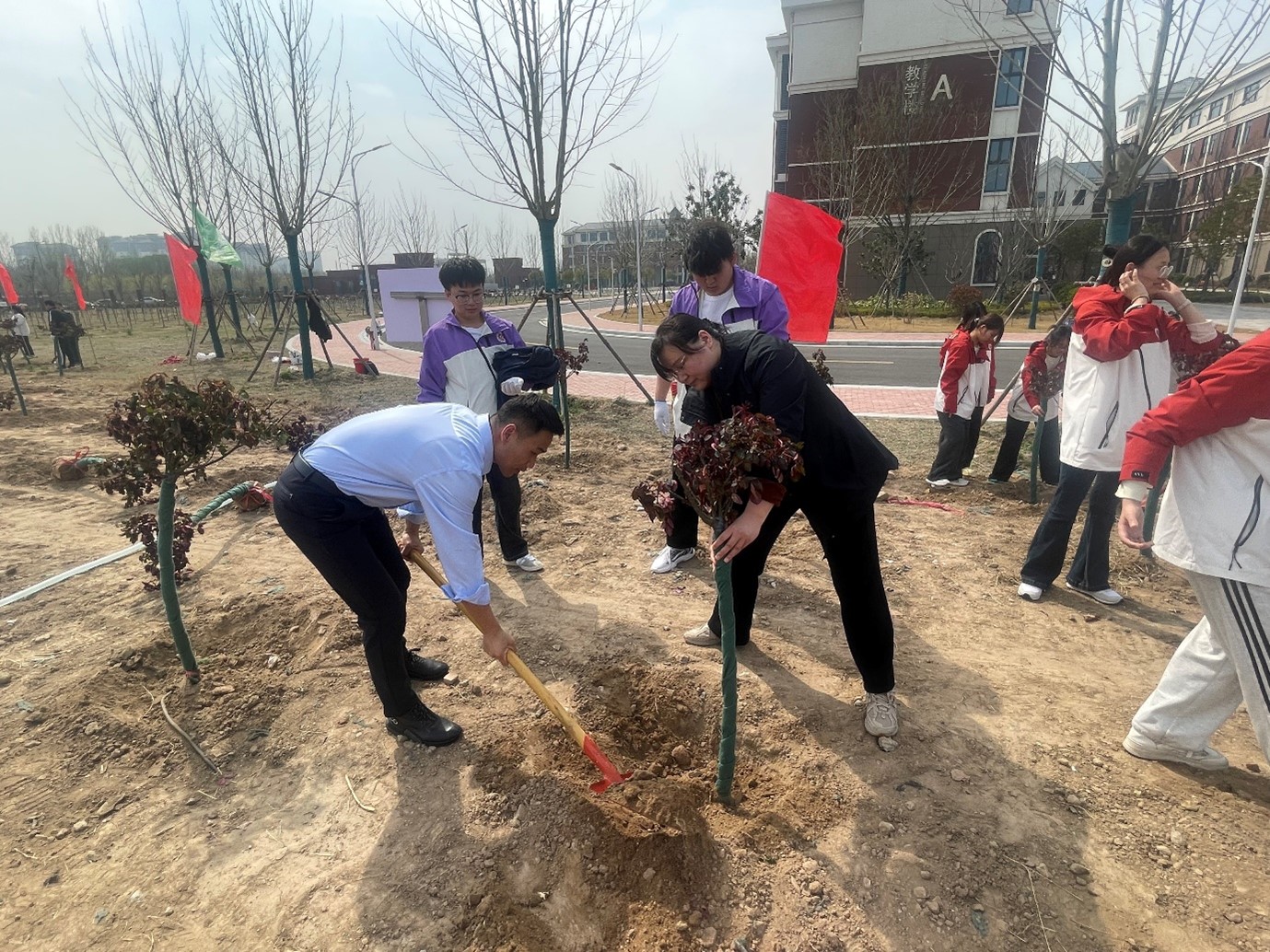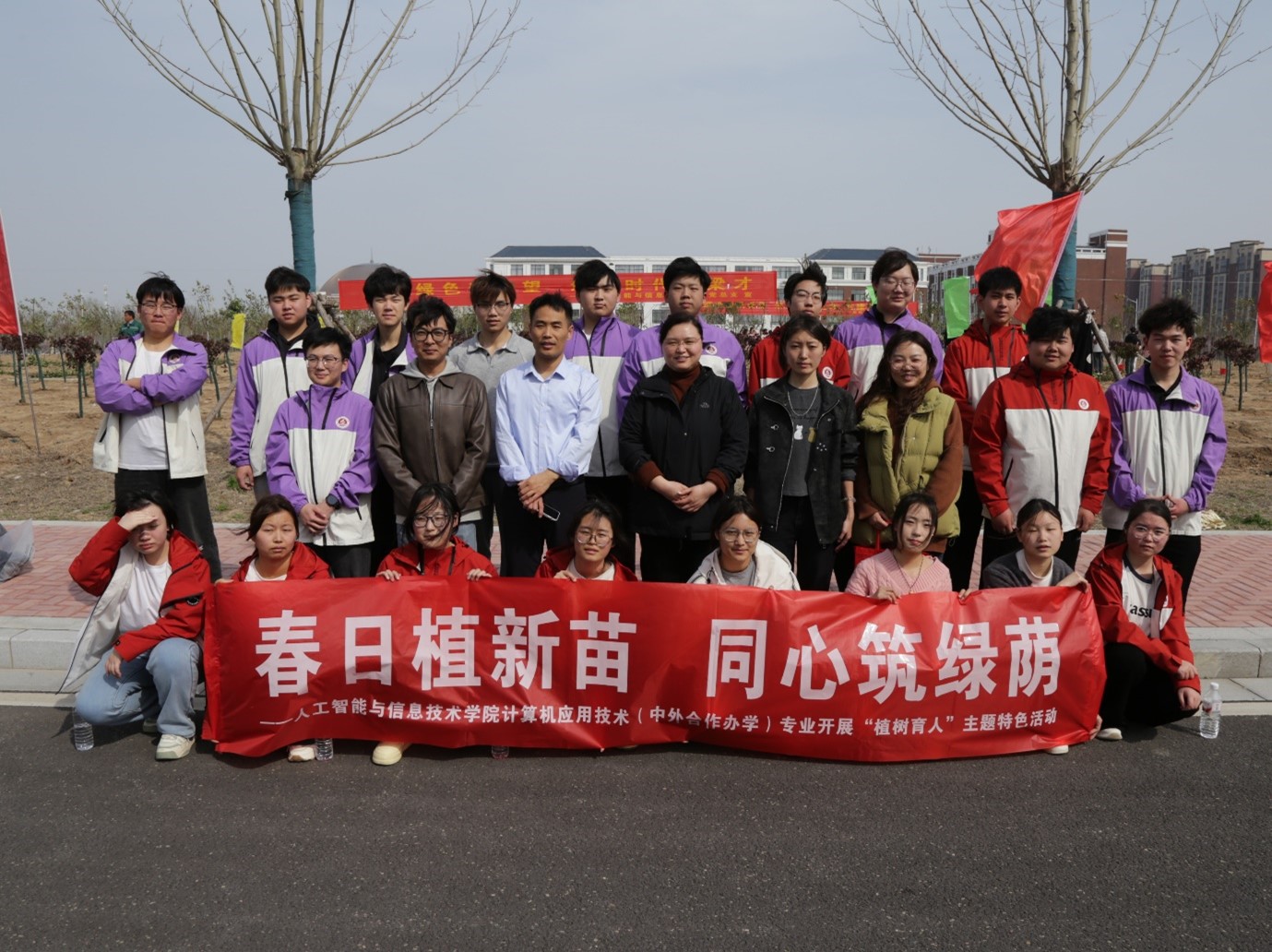 春回大地,万物复苏,正是植树添绿的好时节。为深入贯彻落实生态文明建设要求,厚植师生生态文明理念,切实践行“五育并举”育人方针,3月25日,我校统一组织开展春季植树工作,人工智能与信息技术学院计算机应用技术(中外合作办学)专业师生积极响应学校号召,主动投身活动之中,以实际行动播撒绿色希望,涵养家国情怀与责任担当,用劳动书写青春答卷。