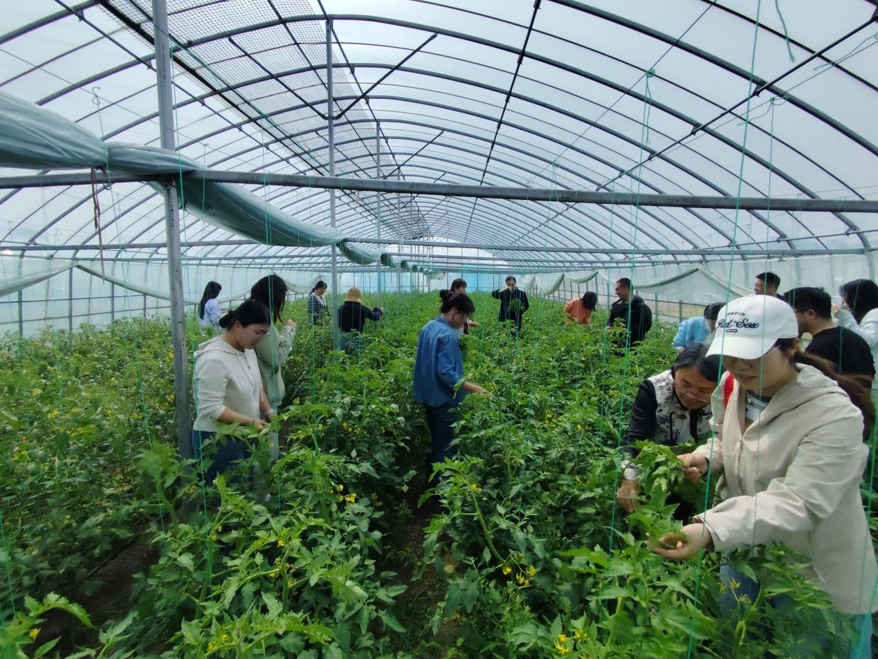 躬身实践,助农惠民。调研结束后,党员同志们走进田间地头,开展助农志愿服务活动。大家分工协作、干劲十足,认真进行农场除草、番茄苗打杈等农事劳作,以实际行动助力农业生产,切实为农户减轻劳作压力,用汗水诠释党员的责任与担当,拉近了校地之间的距离。