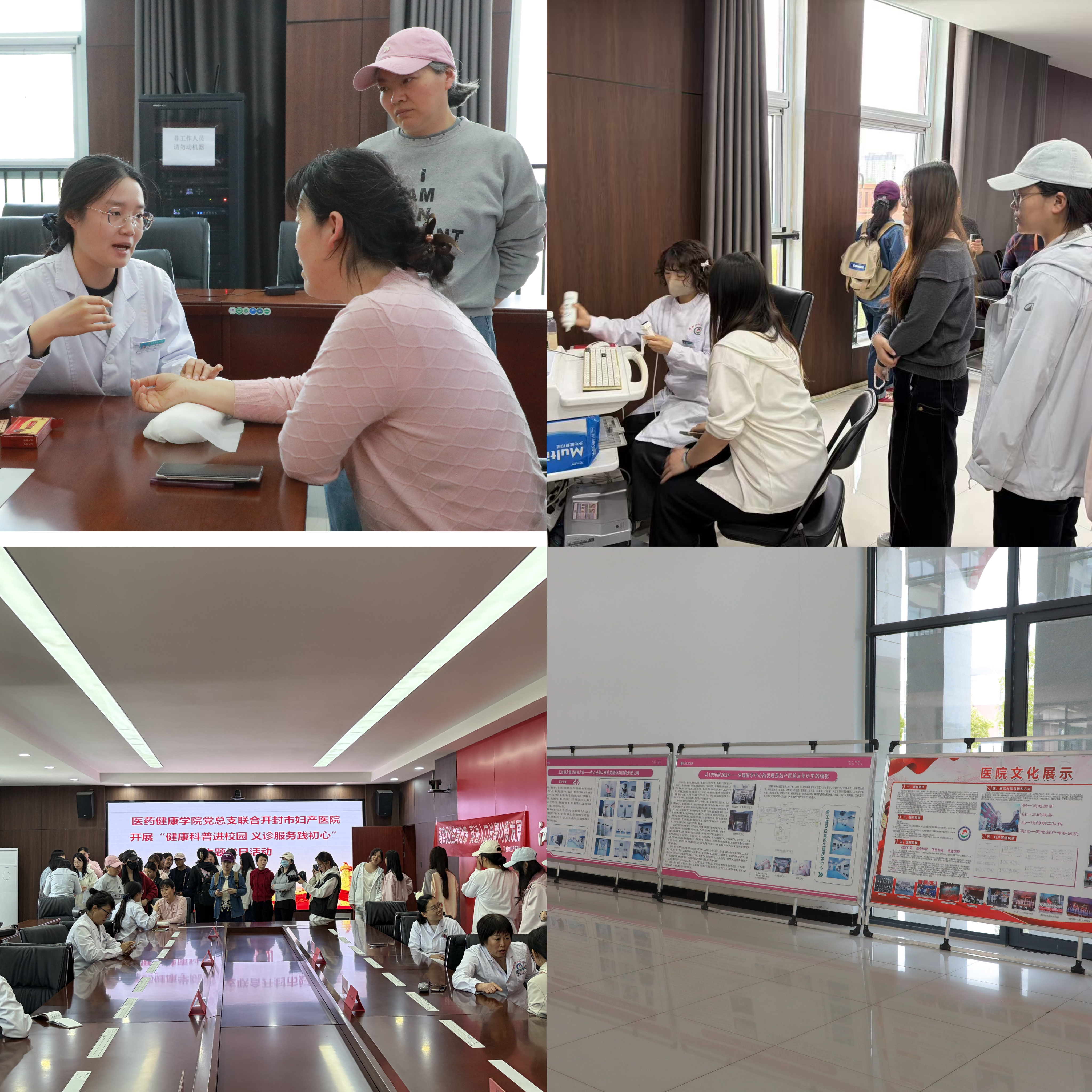 为深化党建引领,践行服务师生理念,4月14日下午,医药健康学院党总支联合开封市妇产医院,于开封校区北院D102开展“健康科普进校园 义诊服务践初心”主题党日活动。开封市妇产医院党委书记徐迎军、副院长王艳及专家团队与开封校区管委会副主任、综合服务中心主任田军民及学院师生代表共同参与。本次活动由医药健康学院党总支书记张亮主持。