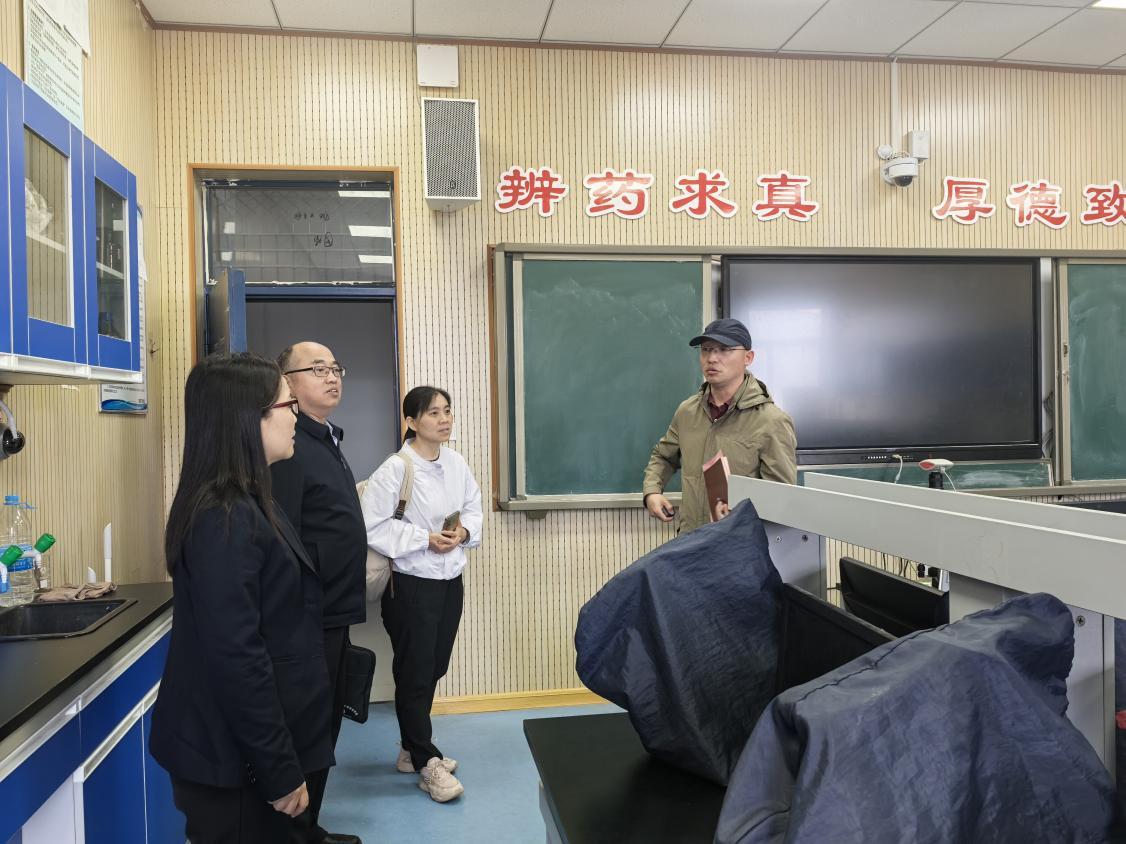 座谈会后,许卫锋一行参观了我院中药博物馆、中药炮制实训室、中药鉴定实训室、中药调剂实训室,实地考察实训场地功能布局、设备配置与教学开展情况,详细了解实践教学体系与学生技能培养模式,对我院实训教学的规范化、标准化、专业化建设给予高度评价。