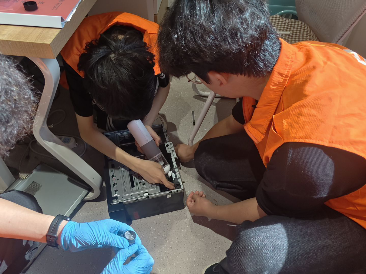 活动现场,志愿者们分工协作、有条不紊。在电脑维修服务台前,志愿者们耐心接待前来咨询的居民,针对电脑卡顿、系统故障、软件安装等常见问题进行检测与维修,用专业技能为居民解决了实际难题。针对社区老年群体,志愿者们一对一开展智能手机教学服务,手把手教老人使用微信视频、扫码支付、线上挂号、防诈骗识别等实用功能,帮助老年人跨越“数字鸿沟”,更好地适应智慧生活。