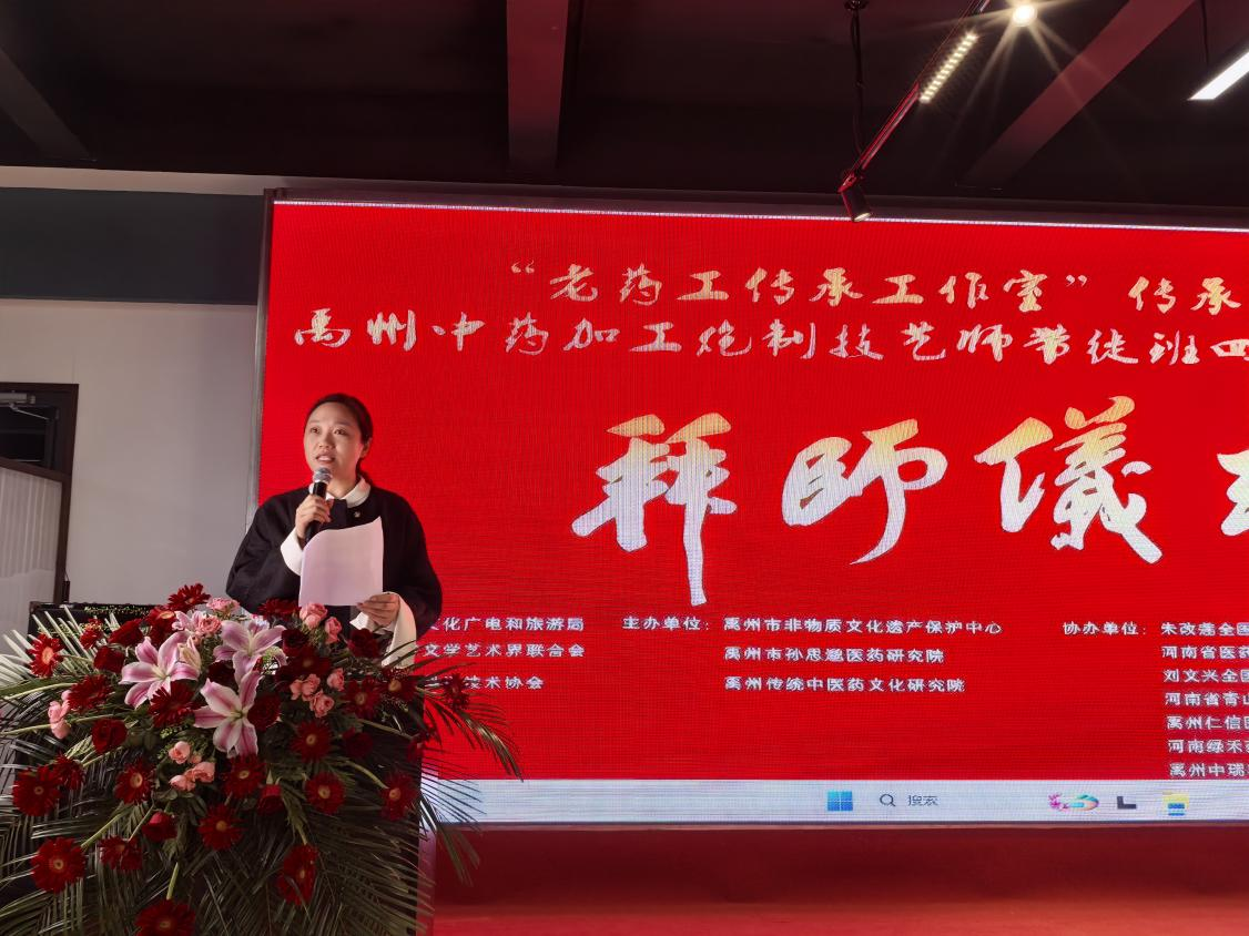 为传承弘扬中医药文化精髓,推动非遗“禹州中药加工炮制技艺”活态传承,2026年4月26日,“老药工传承工作室”传承交流暨禹州中药加工炮制技艺师带徒班四期出师、五期拜师活动在河南亿达康健康产业有限公司隆重举行。院长李元元、副院长唐贝出席活动。
