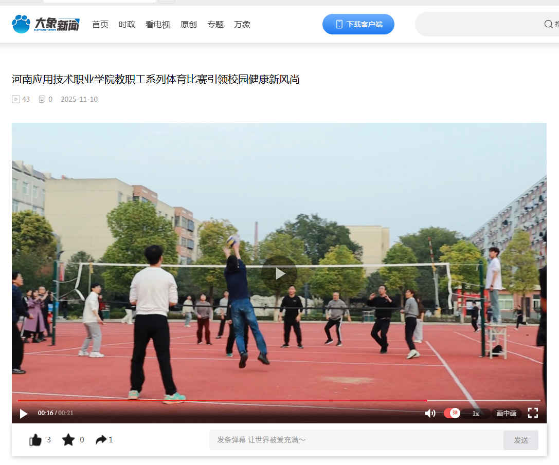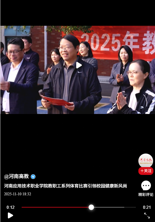11月5日下午,河南应用技术职业学院2025年教职工趣味排球赛在郑州、开封两校区正式开赛。党委书记闫俊山,党委副书记、工会主席陈君丽,党委副书记魏新华,副校长常新中、滕文锐出席开幕式。校工会委员、各分工会代表队、裁判员参加了开幕式。主会场开幕式由魏新华主持。