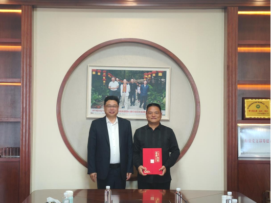 调研活动期间,魏新华代表学校,为学校杰出校友、海南百花岭国际康养基地执行董事侯波颁发了“优秀校友证”。