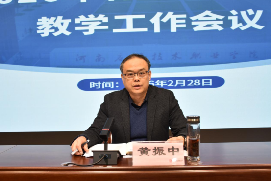 黄振中肯定了2025年秋季学期与寒假期间全校教学工作取得的阶段性成效,并指出新学期教学工作要聚焦“前瞻性谋划、科学化管理、数字化转型”三大攻坚方向提质增效。他要求,一是提高站位抓落实,以高度的责任感践行育人使命。主动适应职业教育改革发展新形势新任务,以潜心育人的行动自觉投身教学工作。二是团结协作抓落实,以强大的合力凝聚发展动能。牢固树立“一盘棋”思想,形成推动教学高质量发展的强大合力。三是改进作风抓落实,以务实的举措彰显担当作为。大力弘扬求真务实、担当作为、精益求精的工作作风,以优异成绩迎接各项检验。