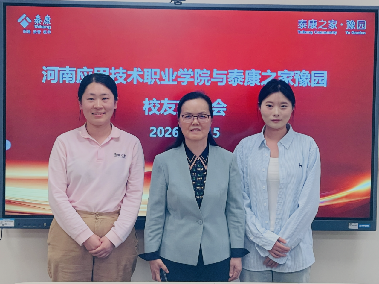 为深入推进校企合作、产教融合,全面落实访企拓岗促就业专项行动,2026年4月15日下午,学校党委副书记、工会主席陈君丽带队赴泰康之家豫园(郑州)养老服务有限公司走访调研,并慰问在企工作的校友。招生就业与校企合作处处长张二月、康养护理学院院长王风云、副院长邱晓静及专业负责人随行参加。