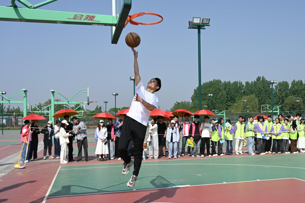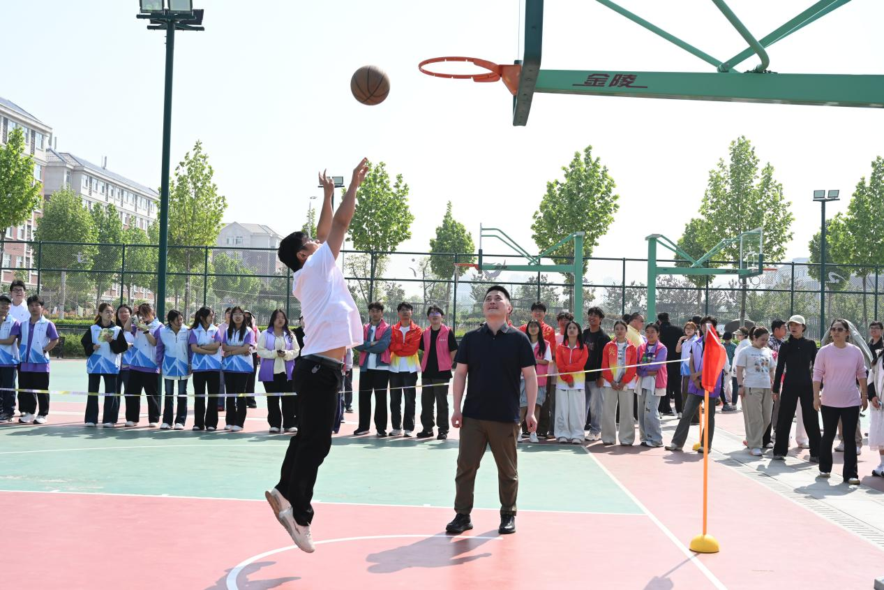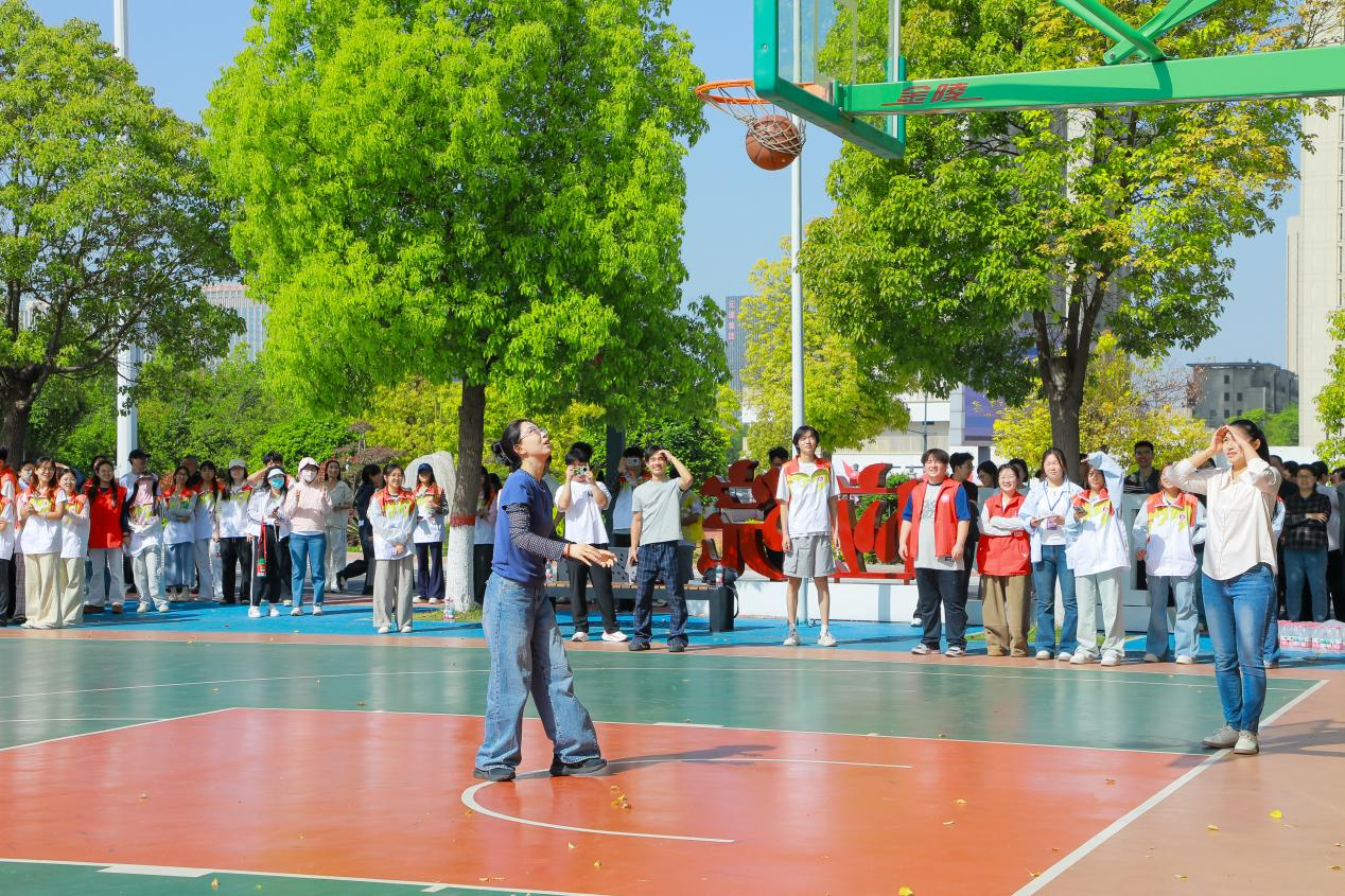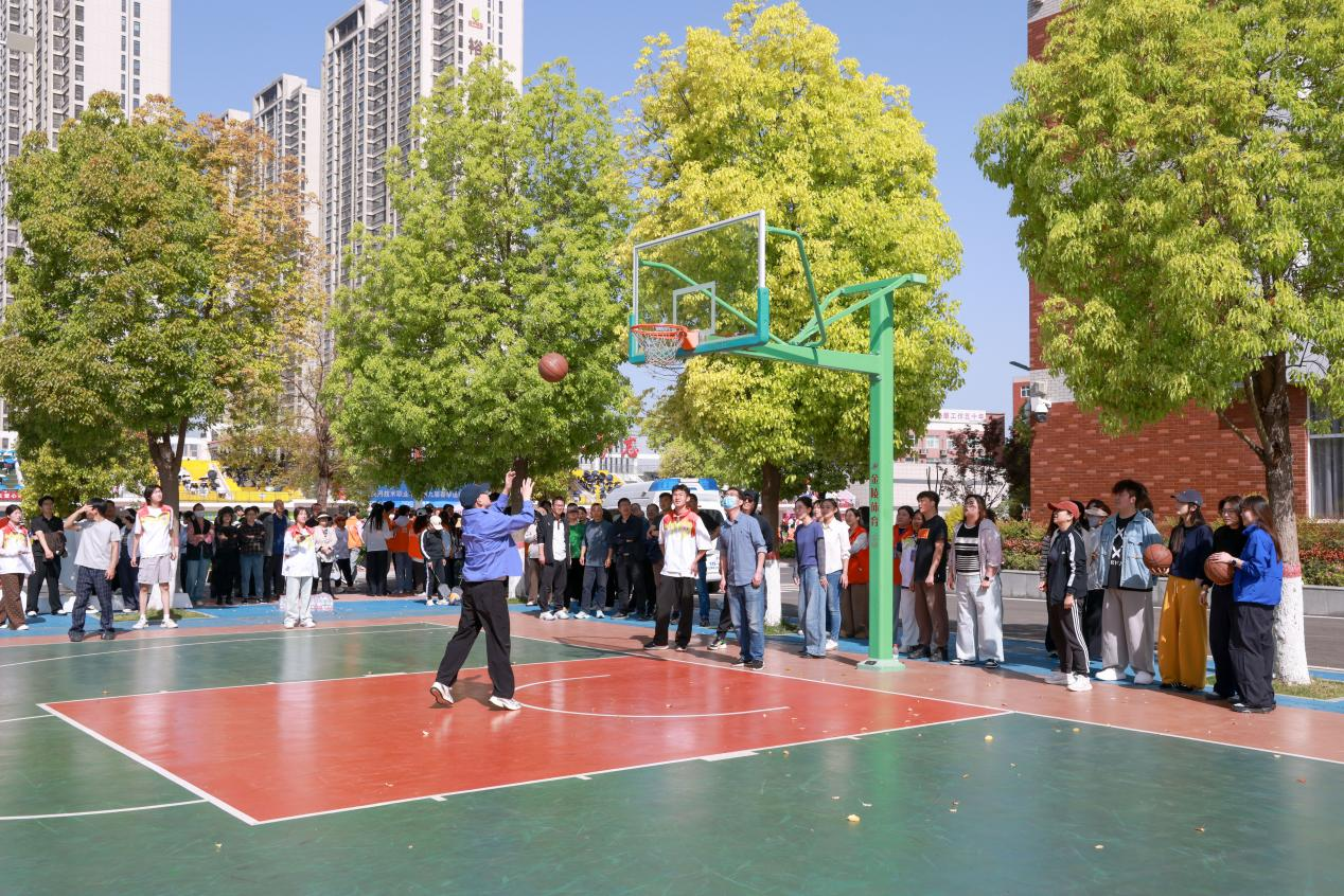 篮球运球投篮接力中,教职工配合默契、精准投球。参赛教职工运球稳健、投篮精准,配合默契十足,每一次精准投中都引来现场阵阵欢呼。