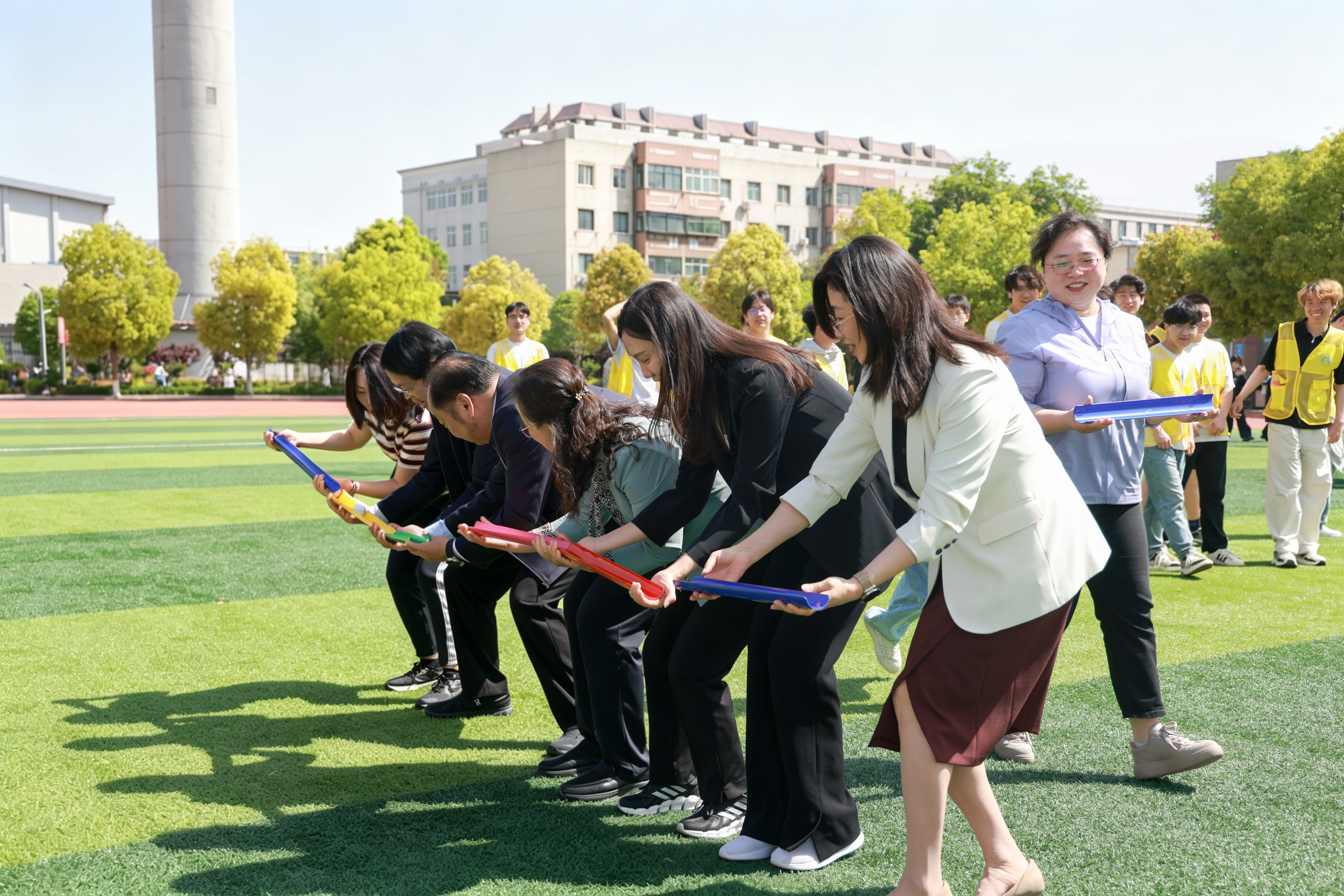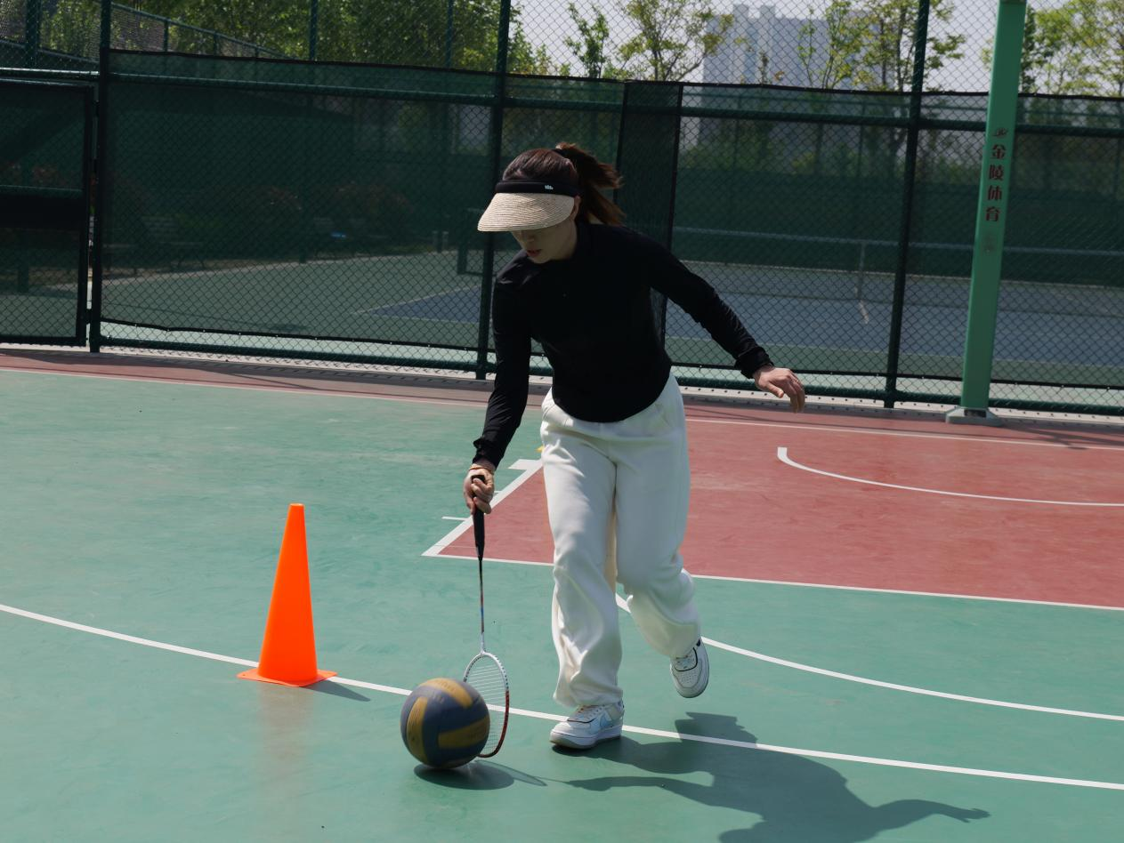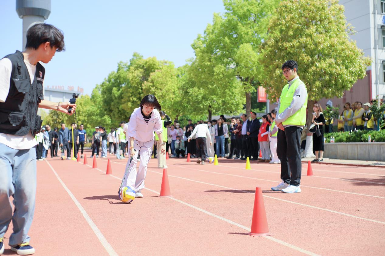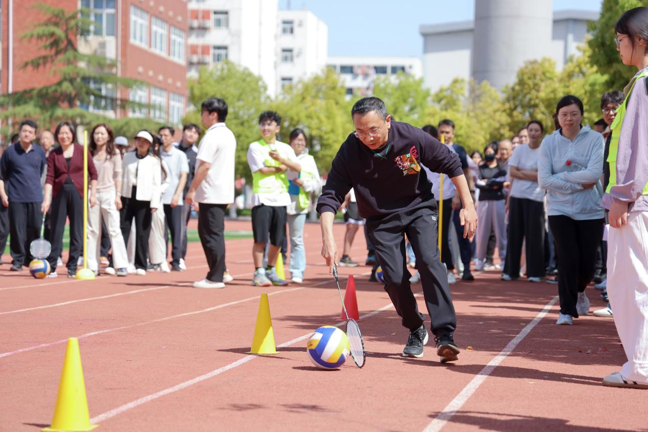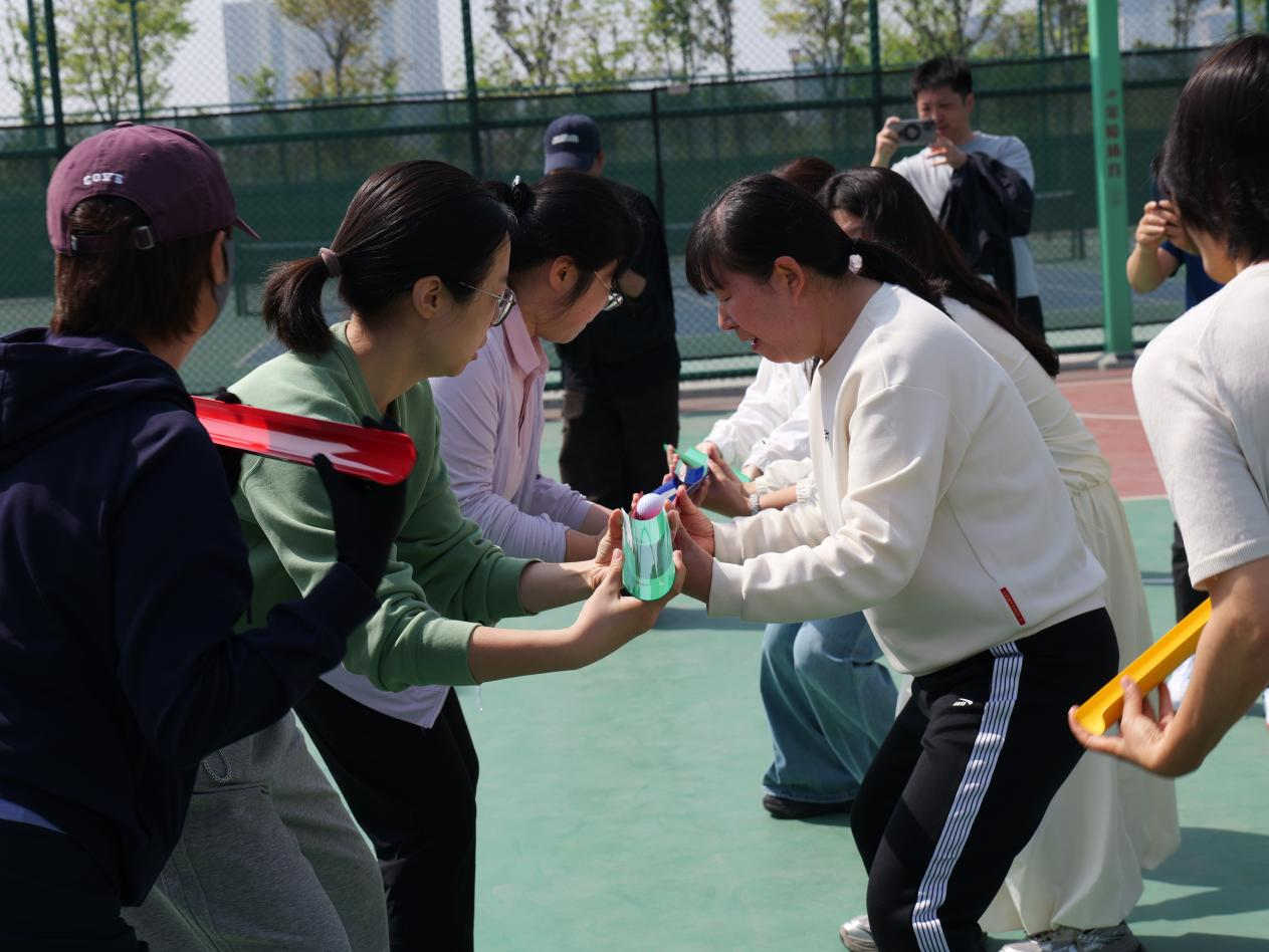 赶球跑接力趣味十足,教职工们手持道具,稳步赶球、奋力向前,欢声笑语中,紧张与趣味交织,充分释放了工作压力。